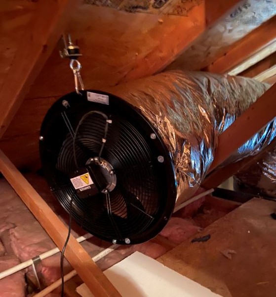 For this project, we installed a CentricAir 3.4 whole house fan with 2-speed remote with timer and temperature control. A Centric Air whole house fan will remove the hot air from the home and the living space reducing the need for air conditioning.